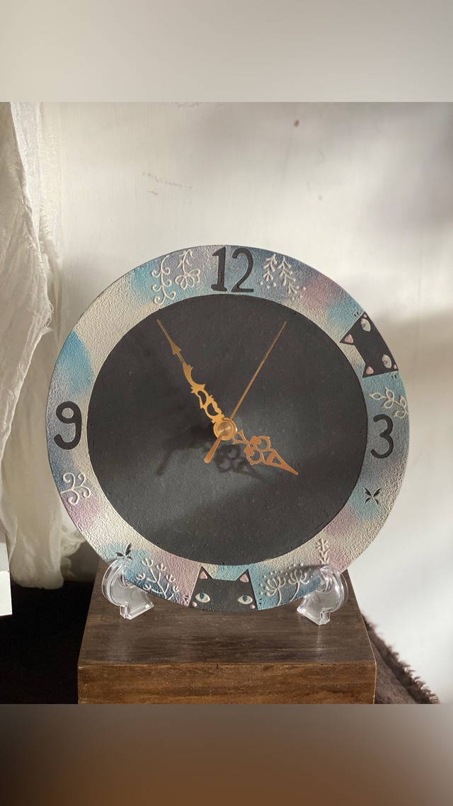 【わんことにゃんこのうつわ展】奥田茜 時計(羽の猫付き)