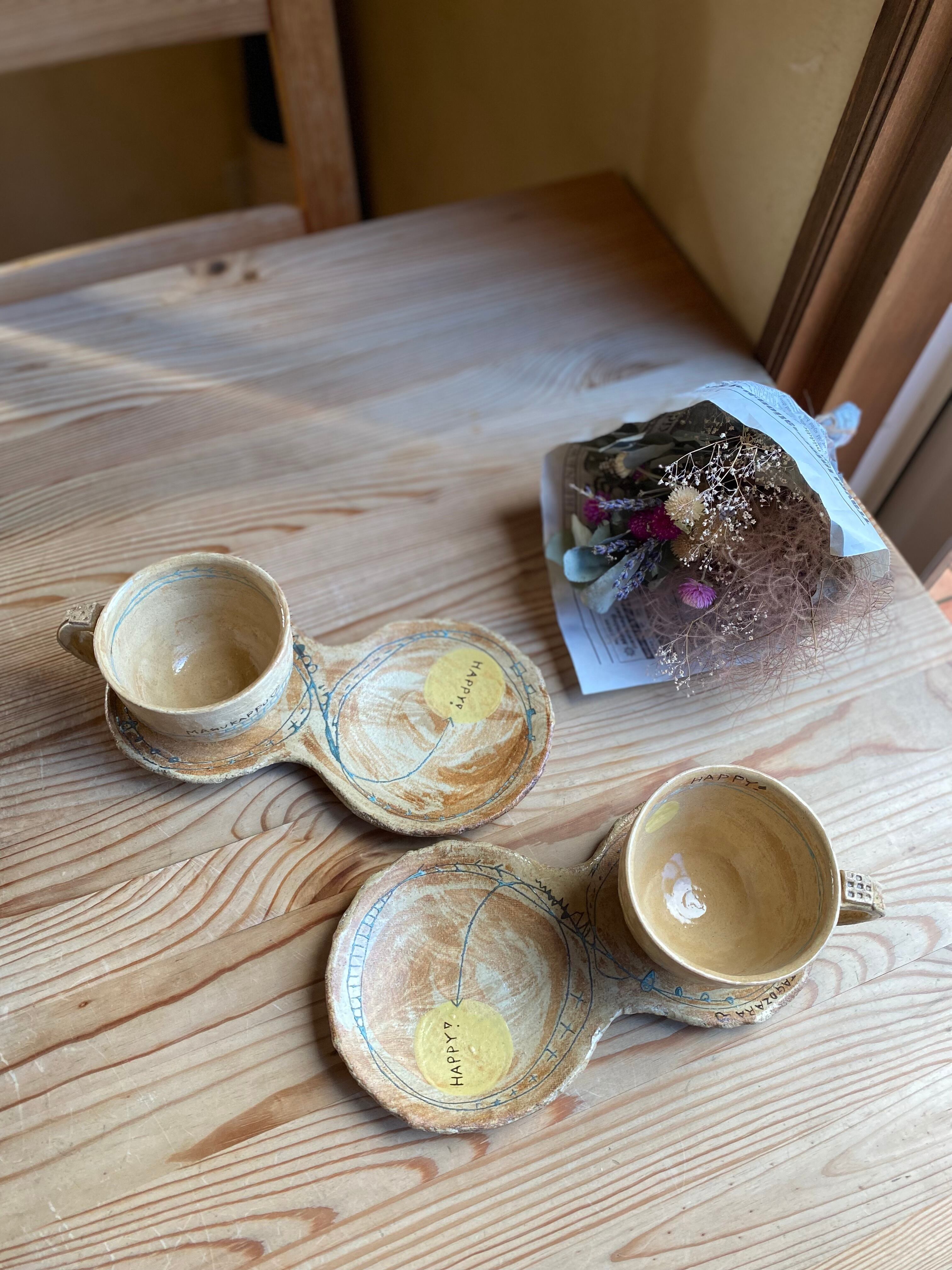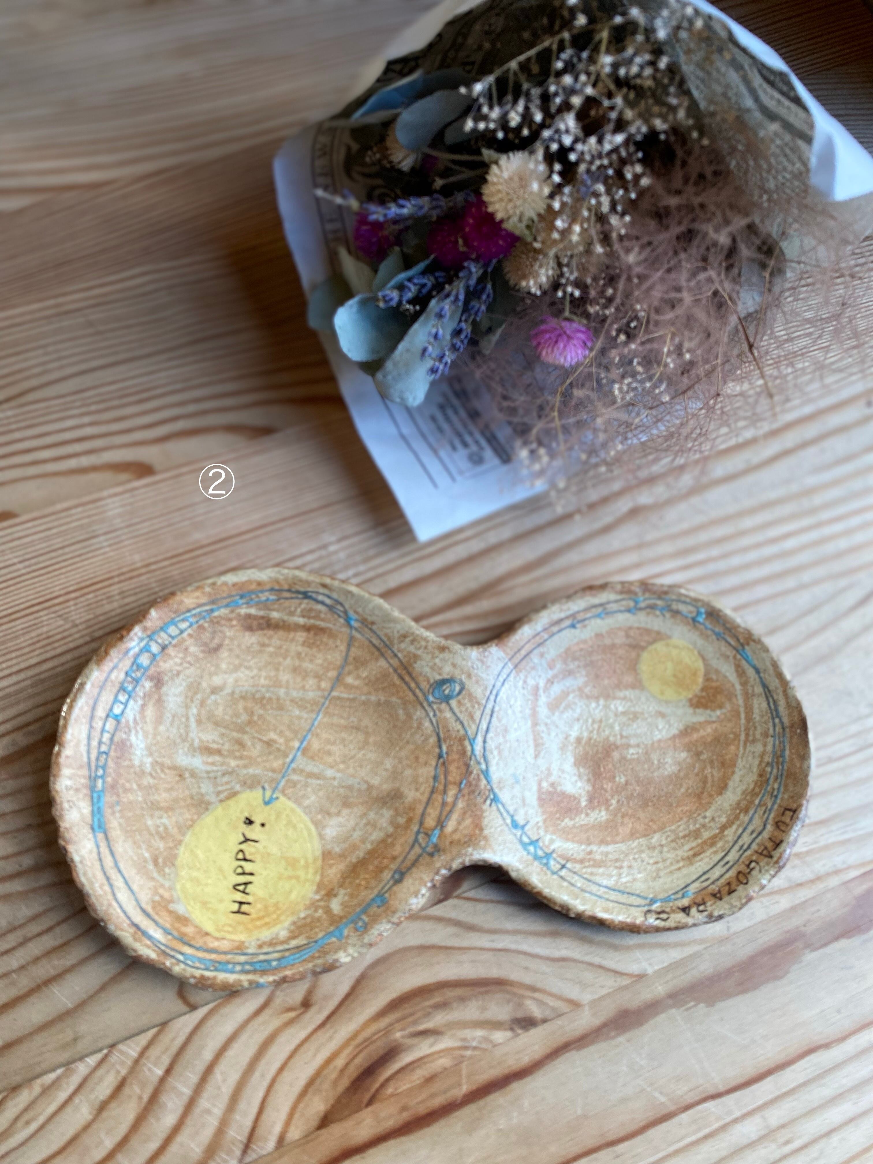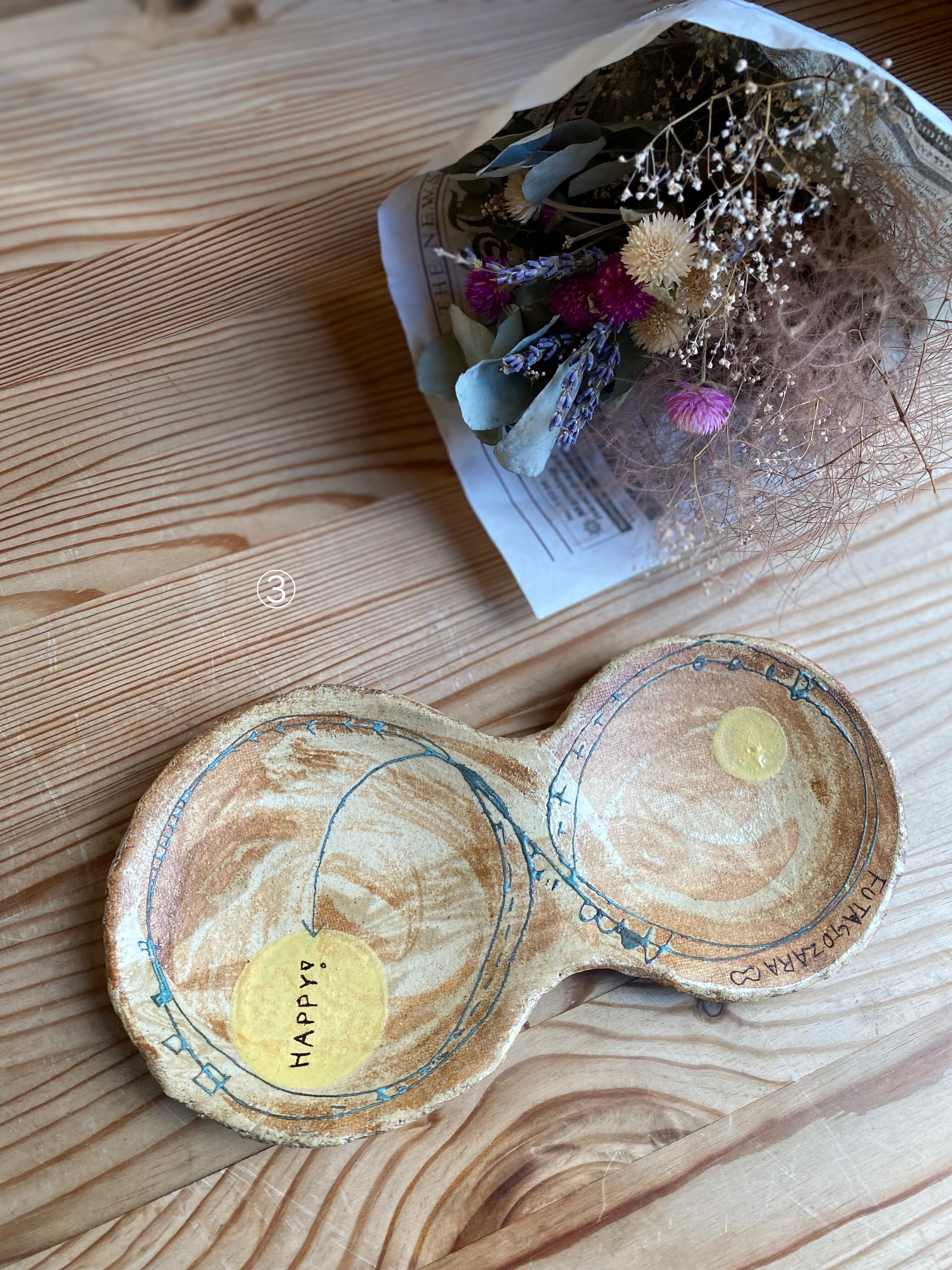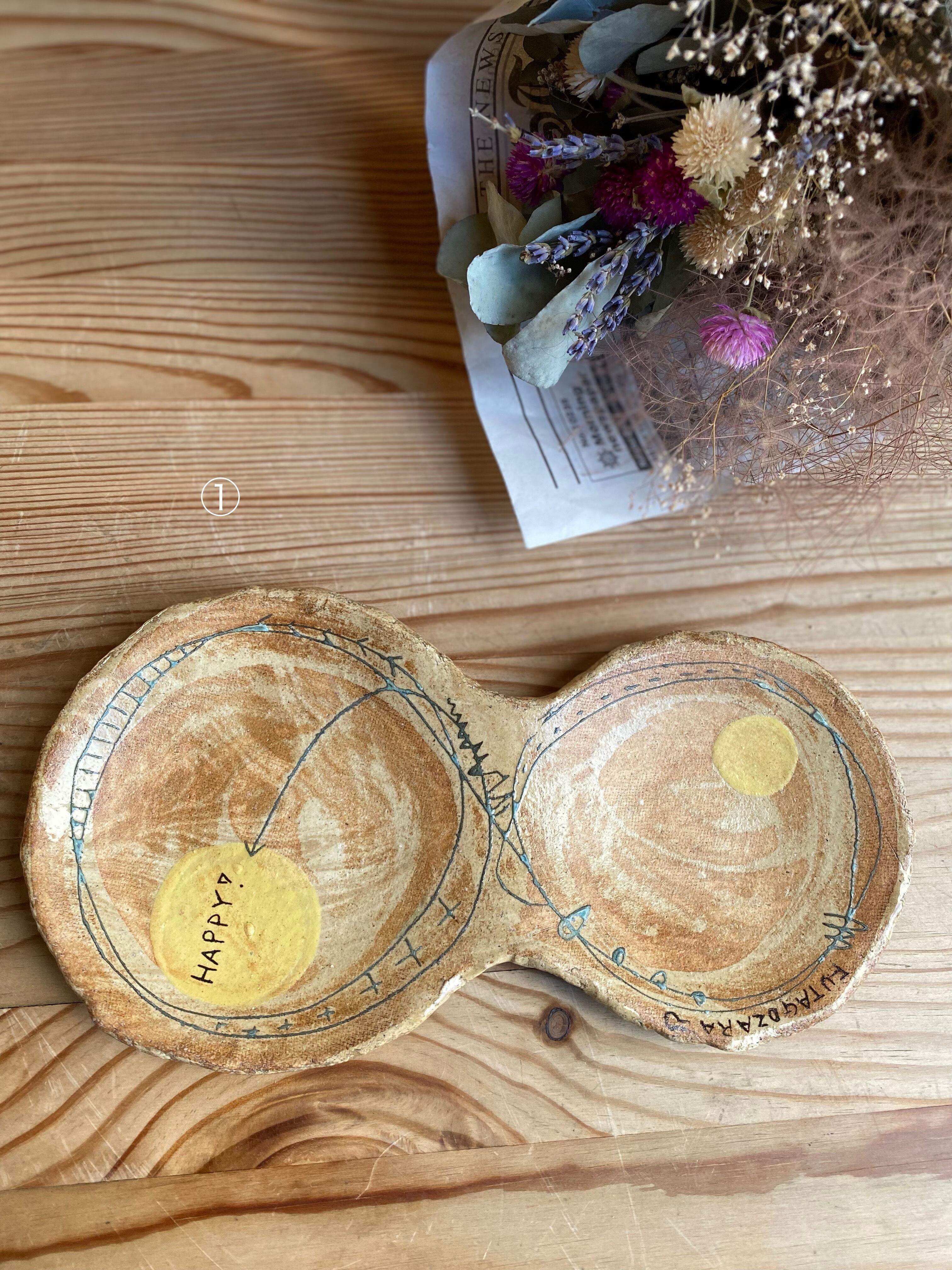 めいポタさんの大人気シリーズよりHAPPYのふたご皿です。