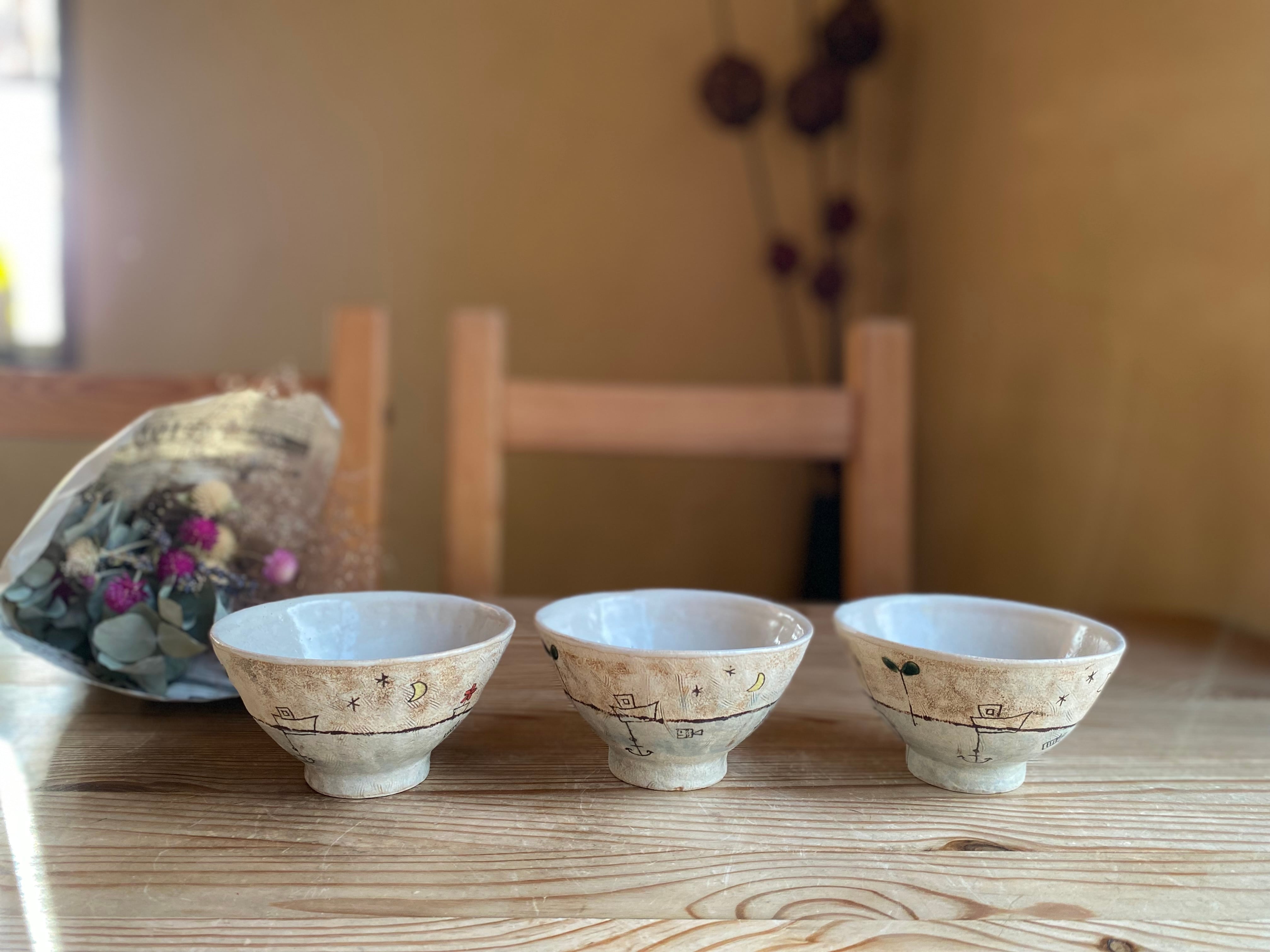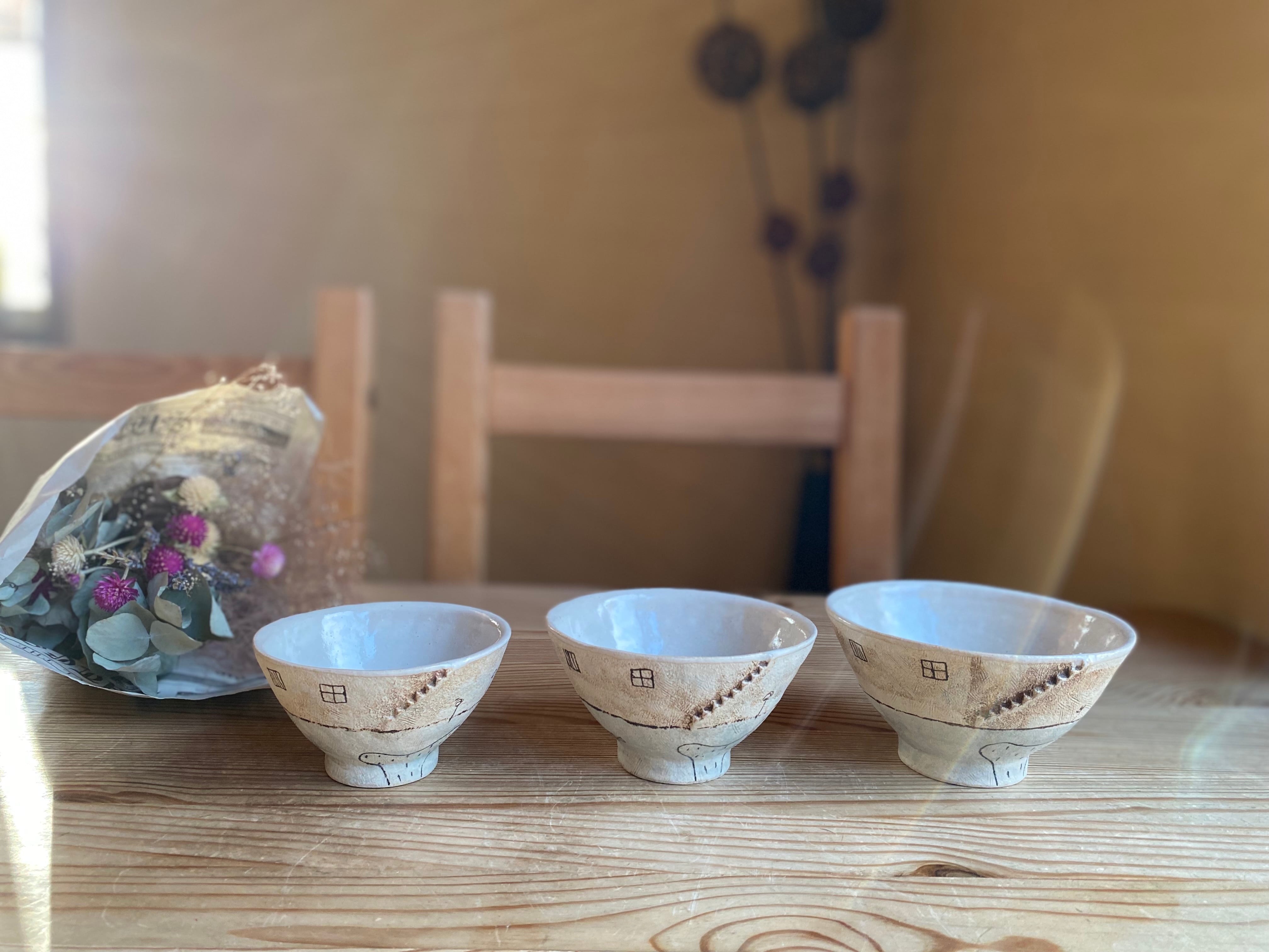 めいポタさんの大人気シリーズより白い壁のお茶碗(中サイズ)です。