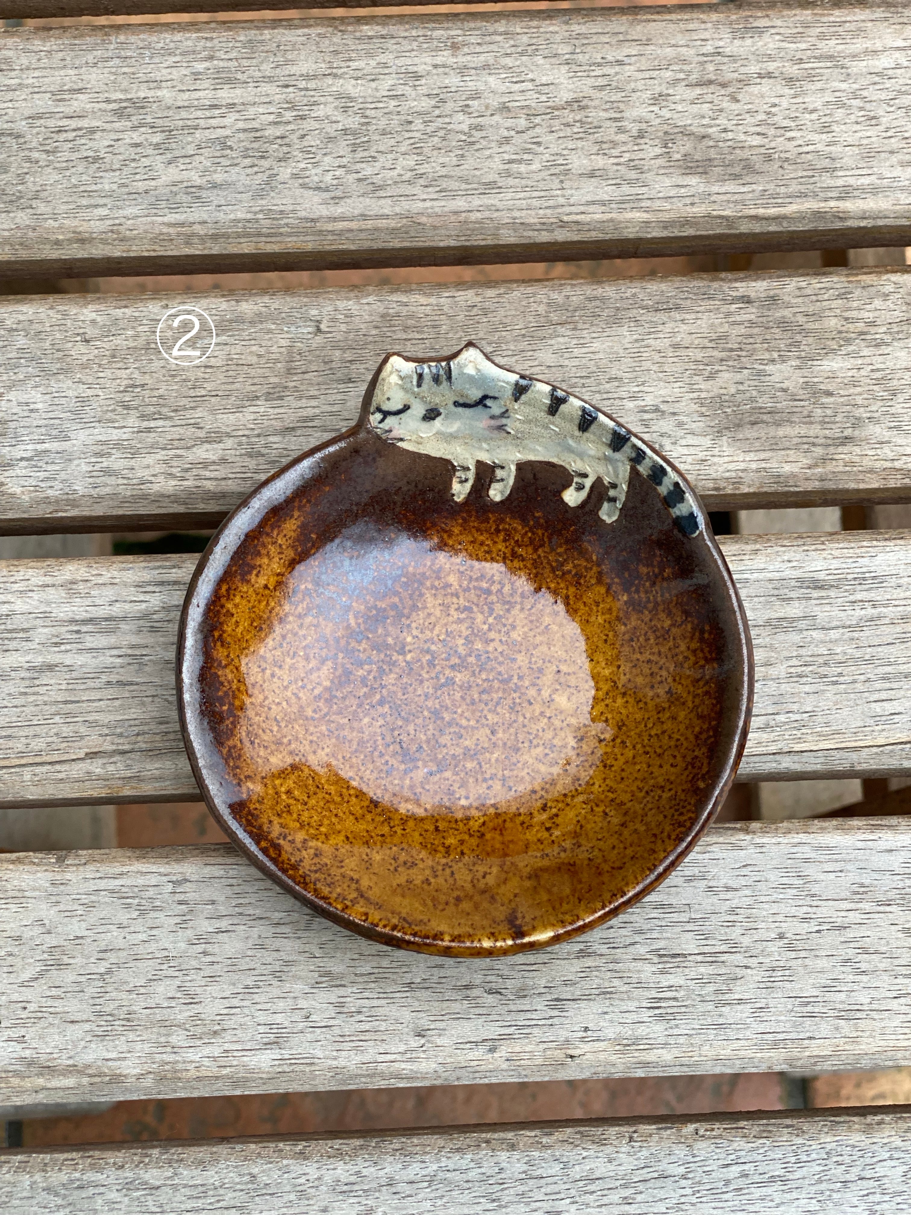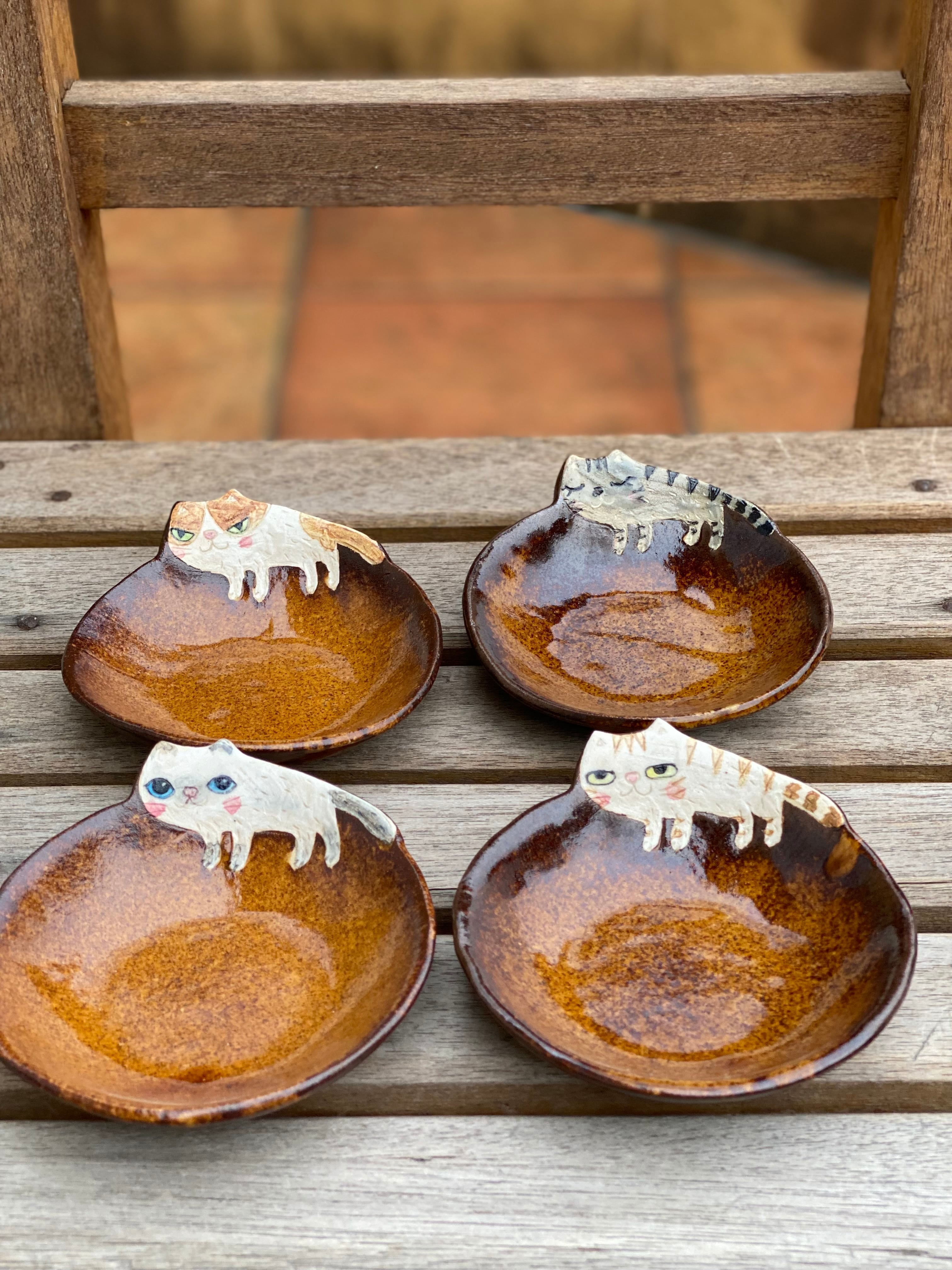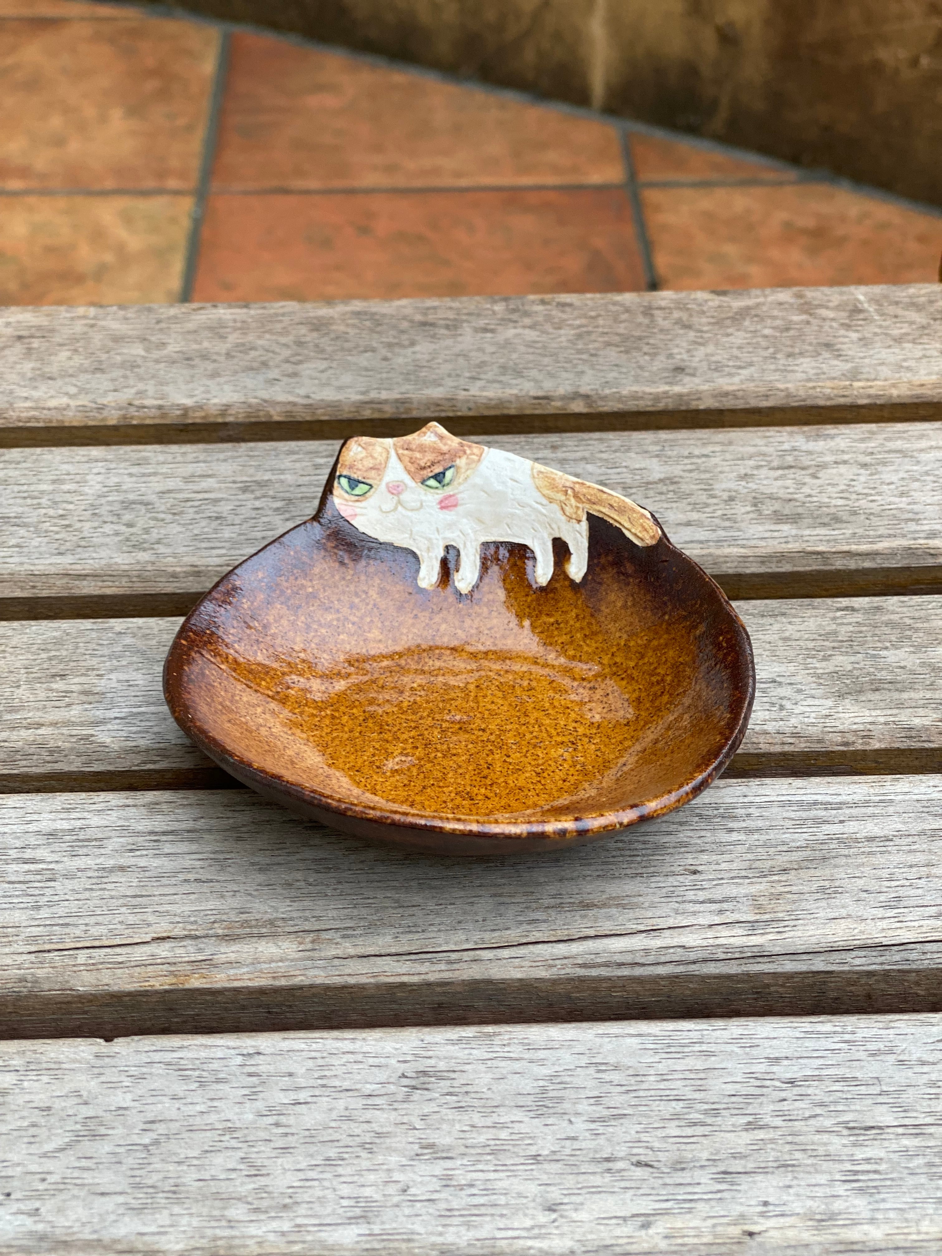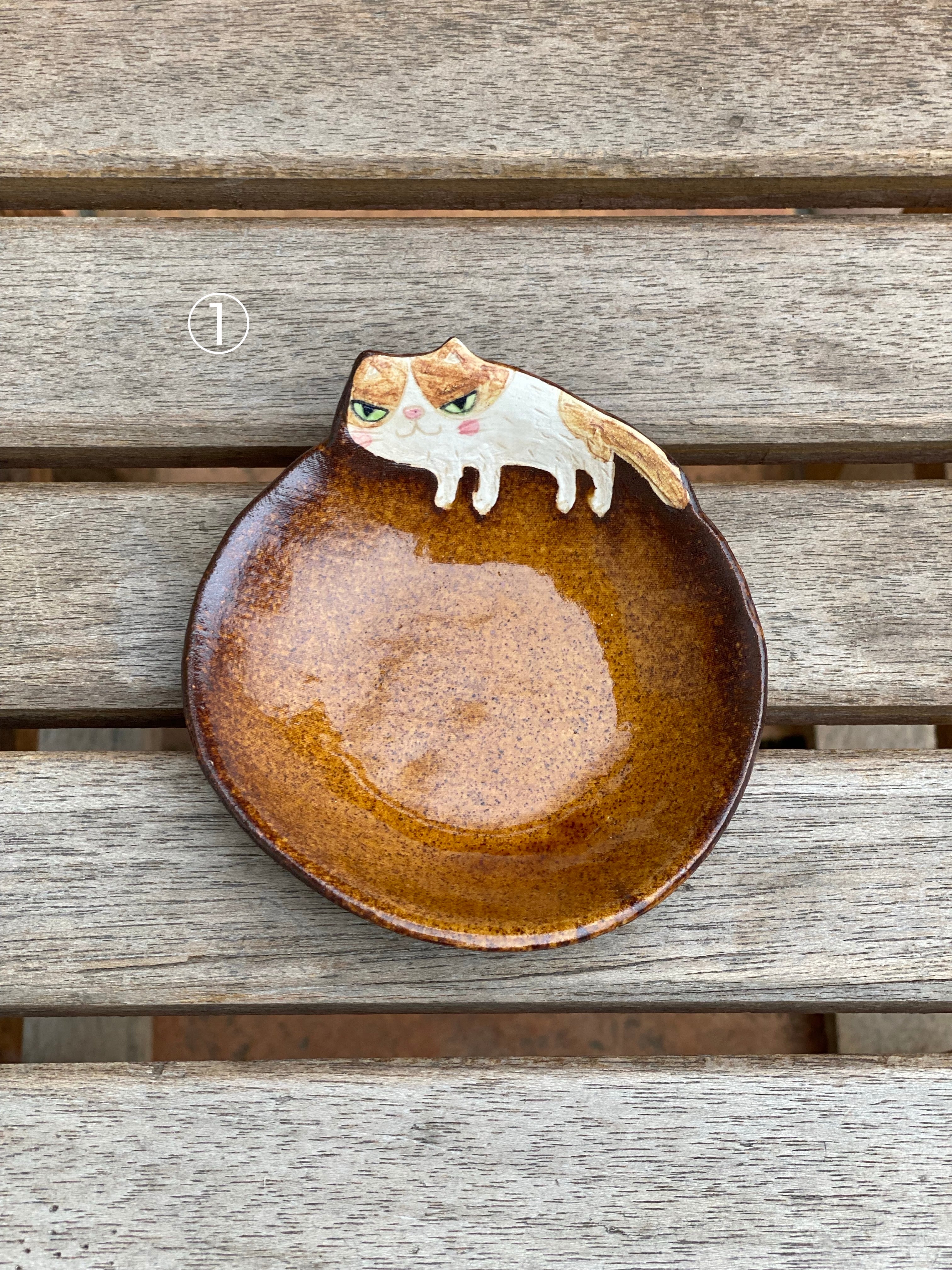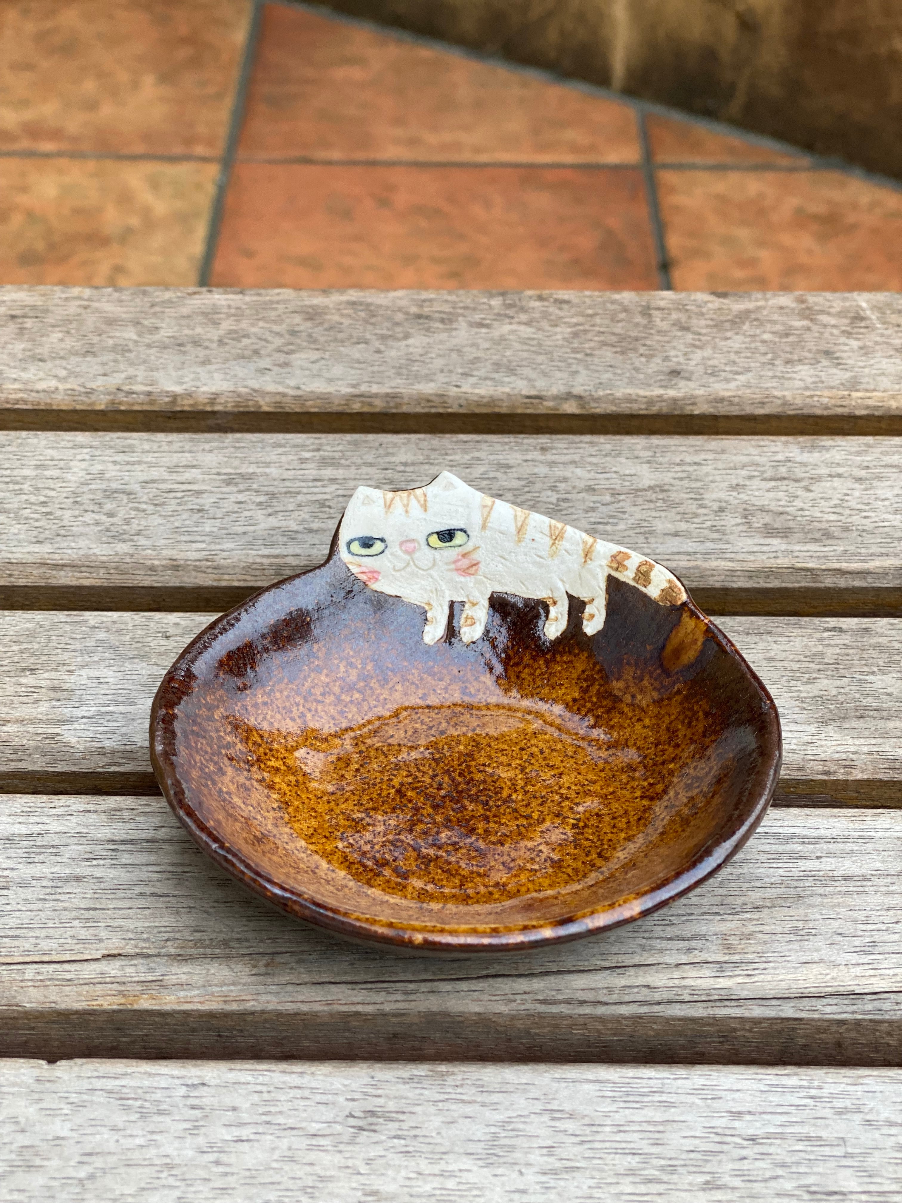 作品名 飛び出た柄ねこ皿