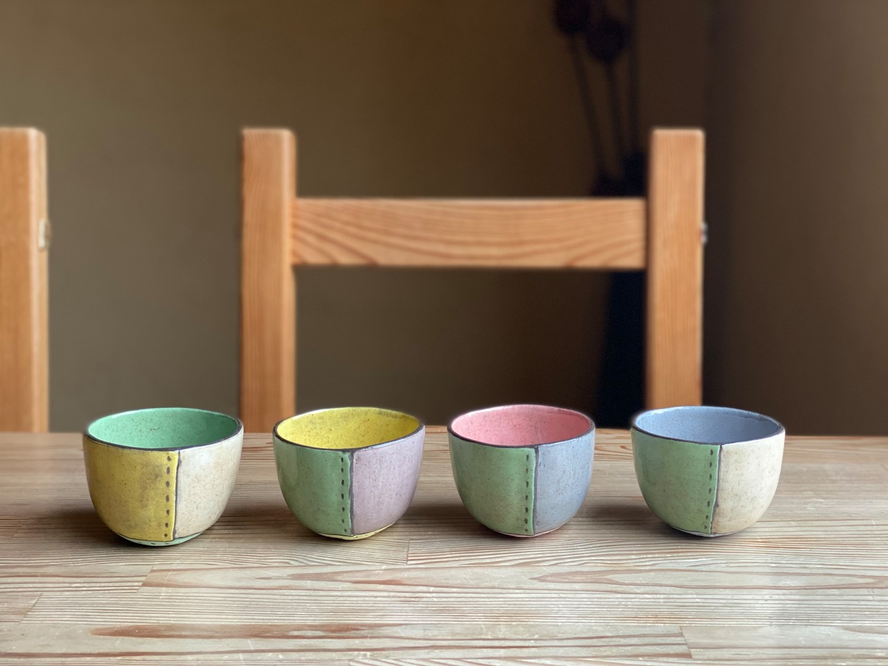 杉町淳美さんのカラフルなパステルカラーのフリーカップです。