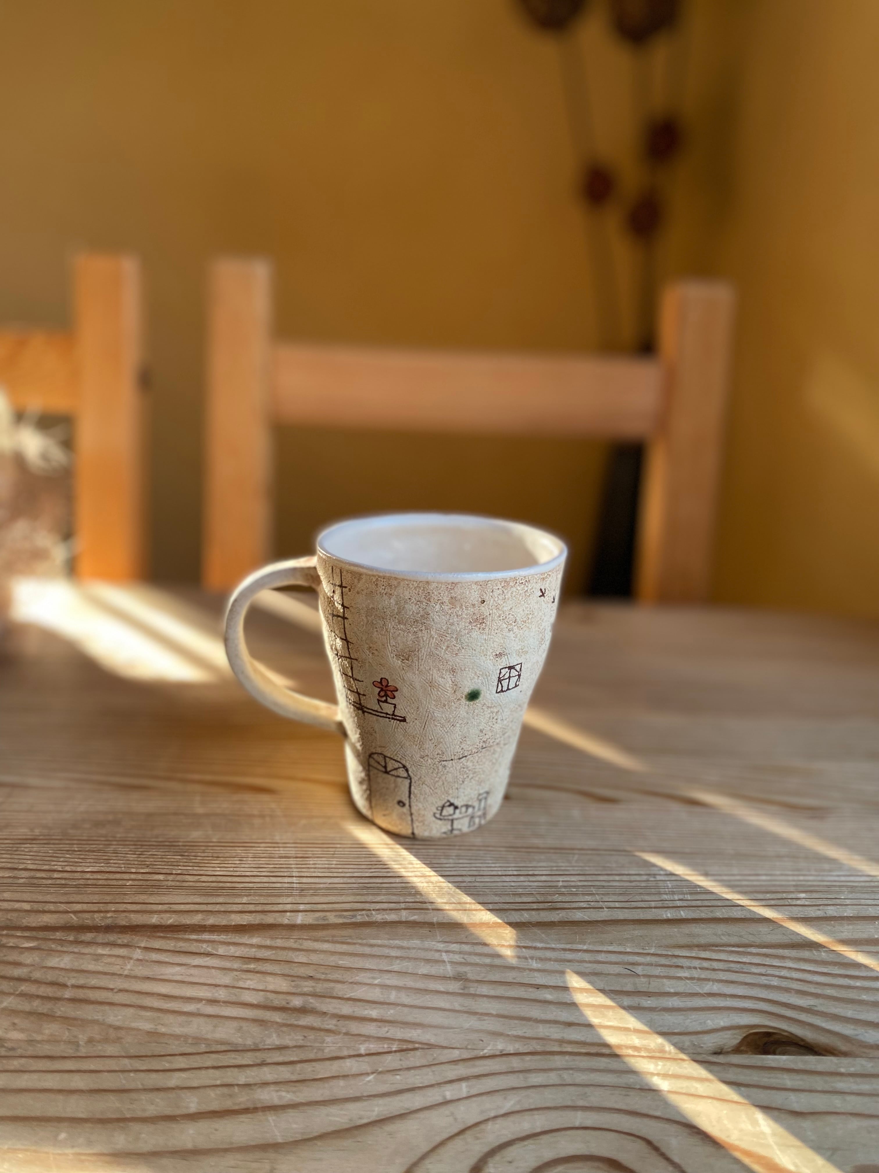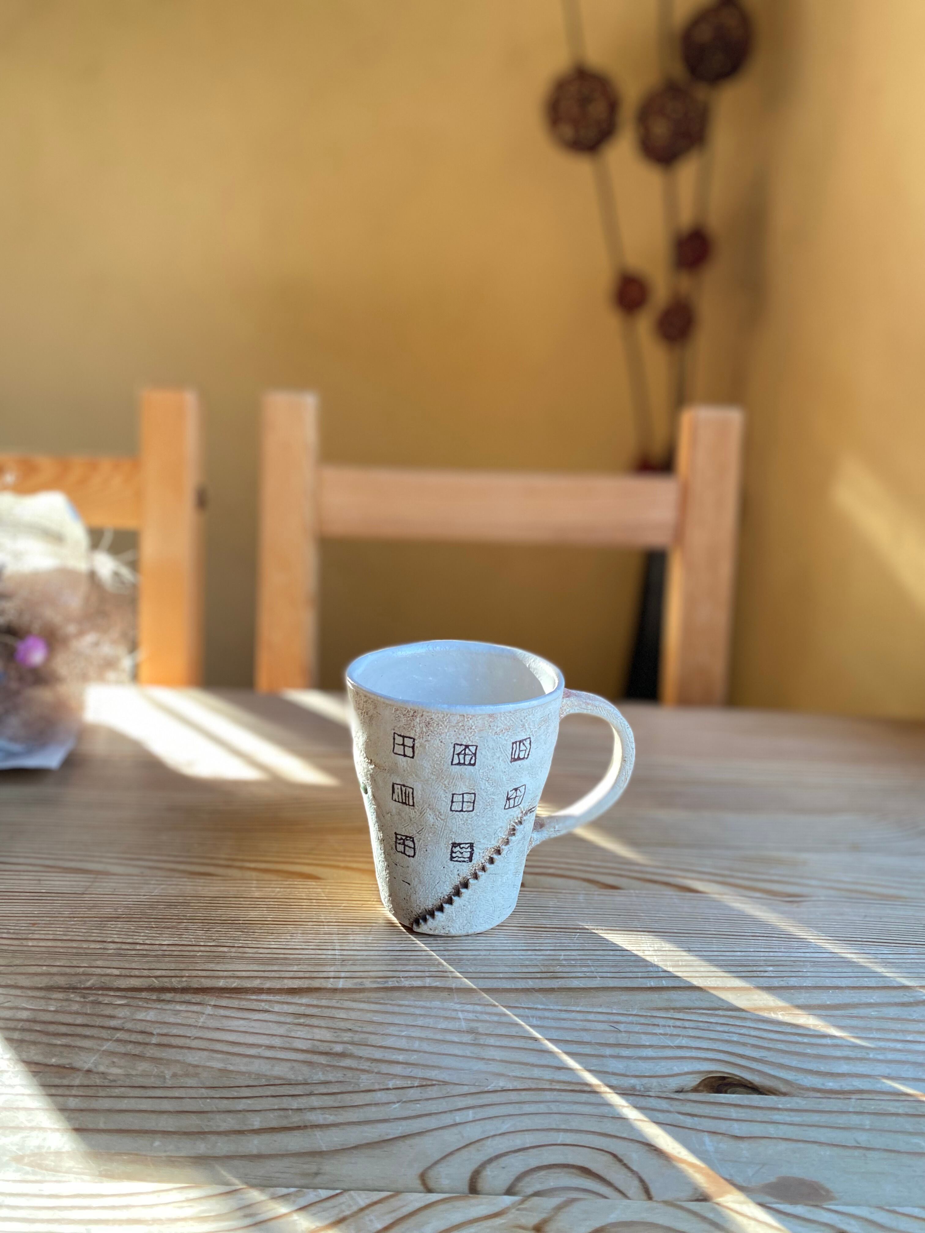 古い壁のお家をイメージして作られたカップは、漆喰の壁のような質感で風合いも良く、