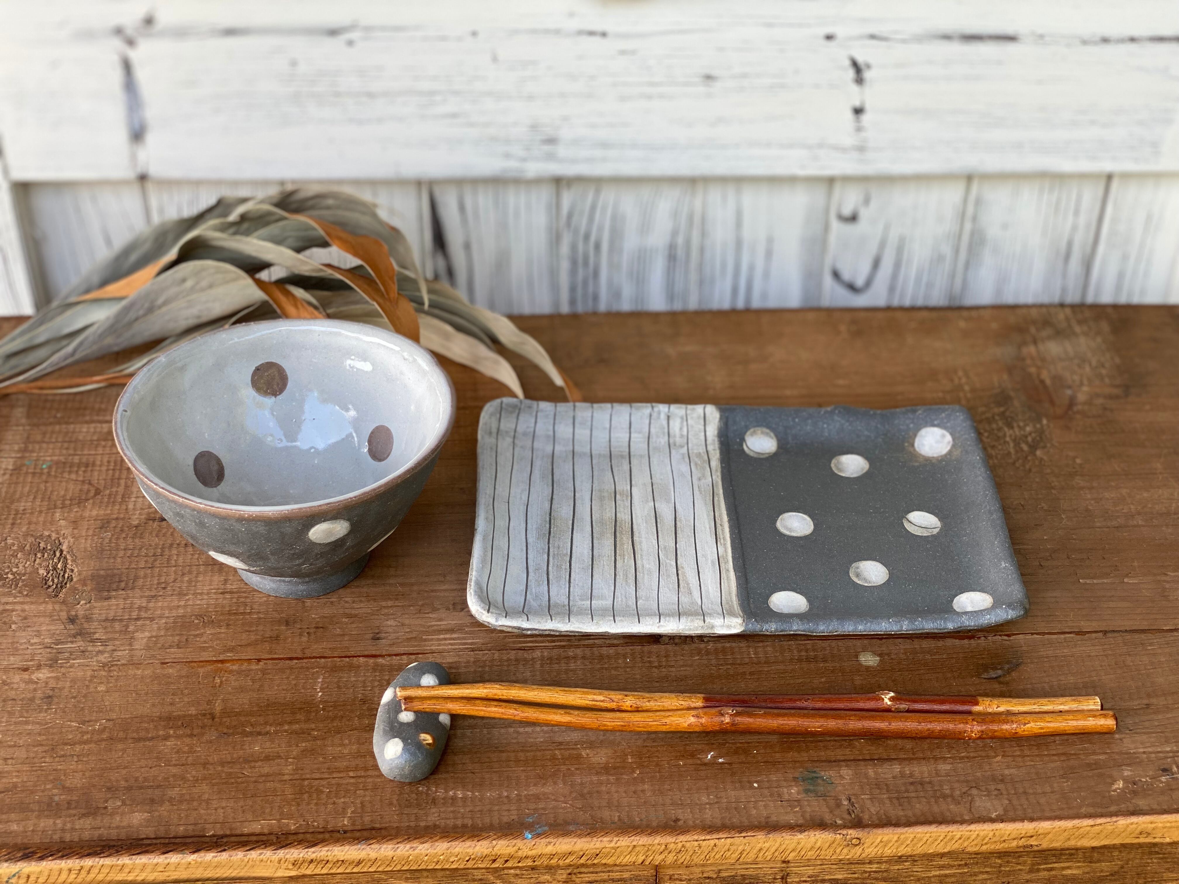 炭化焼成という方法で焼き上げられたグレーを基調にしたお色もシブ可愛い。