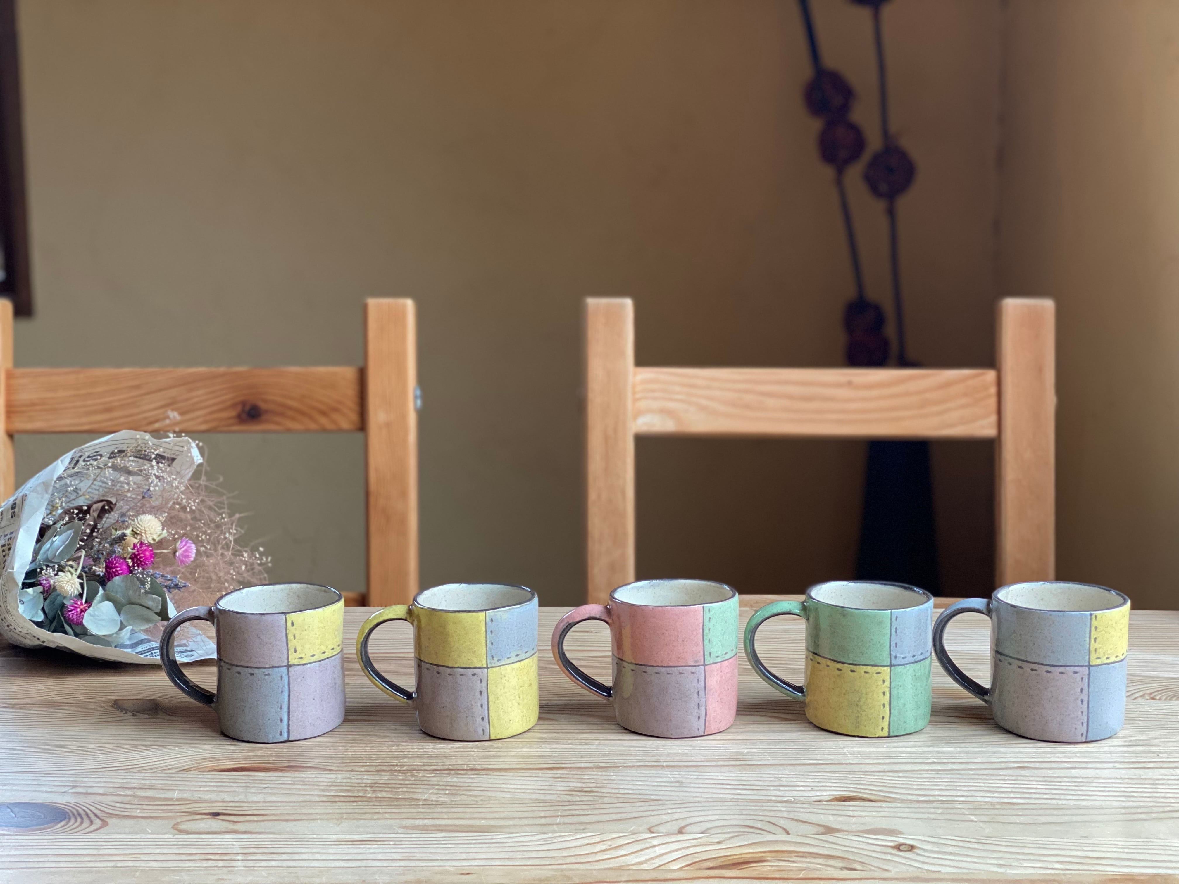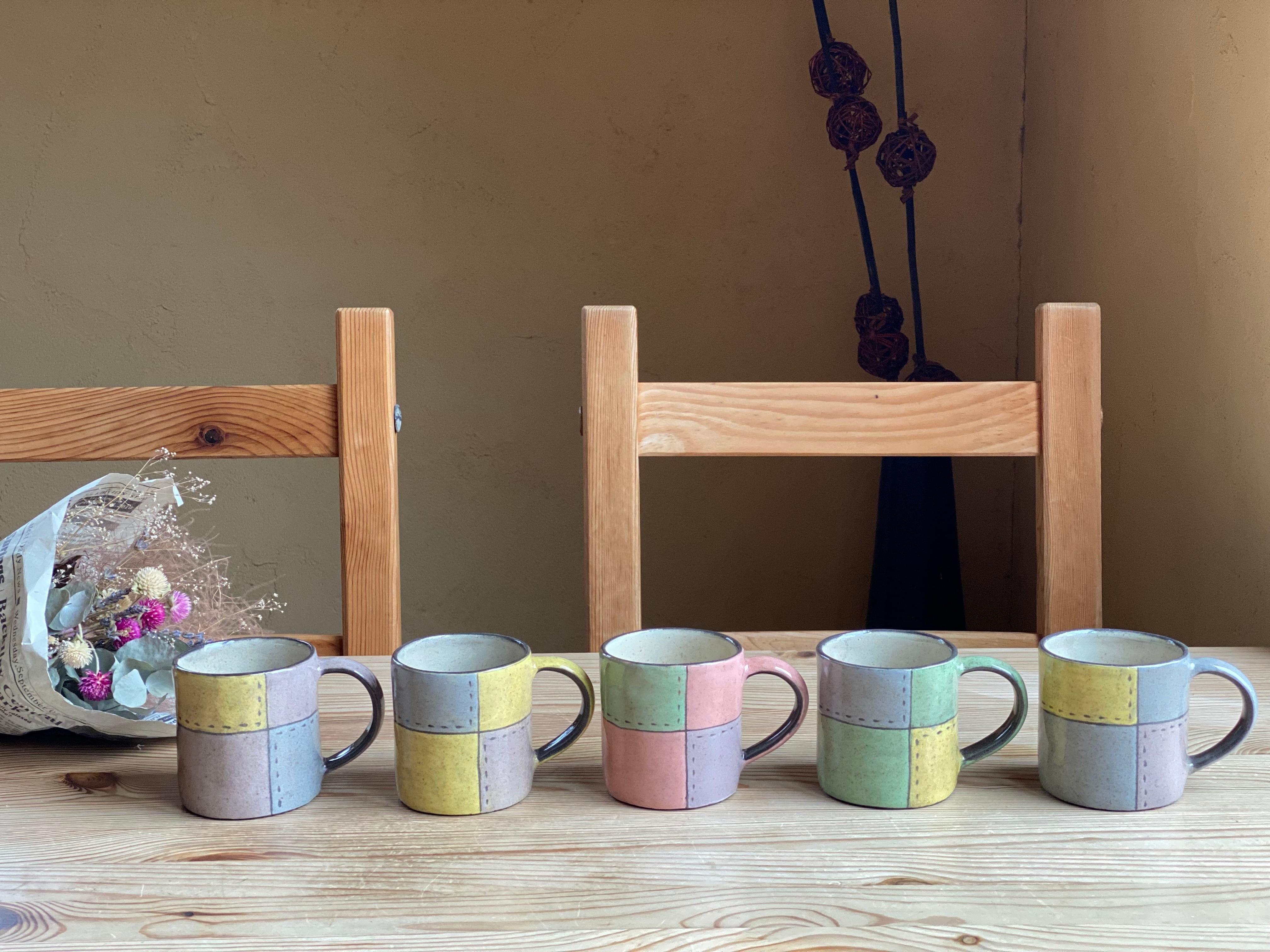 杉町淳美 colors筒型マグカップ(ブロック柄)