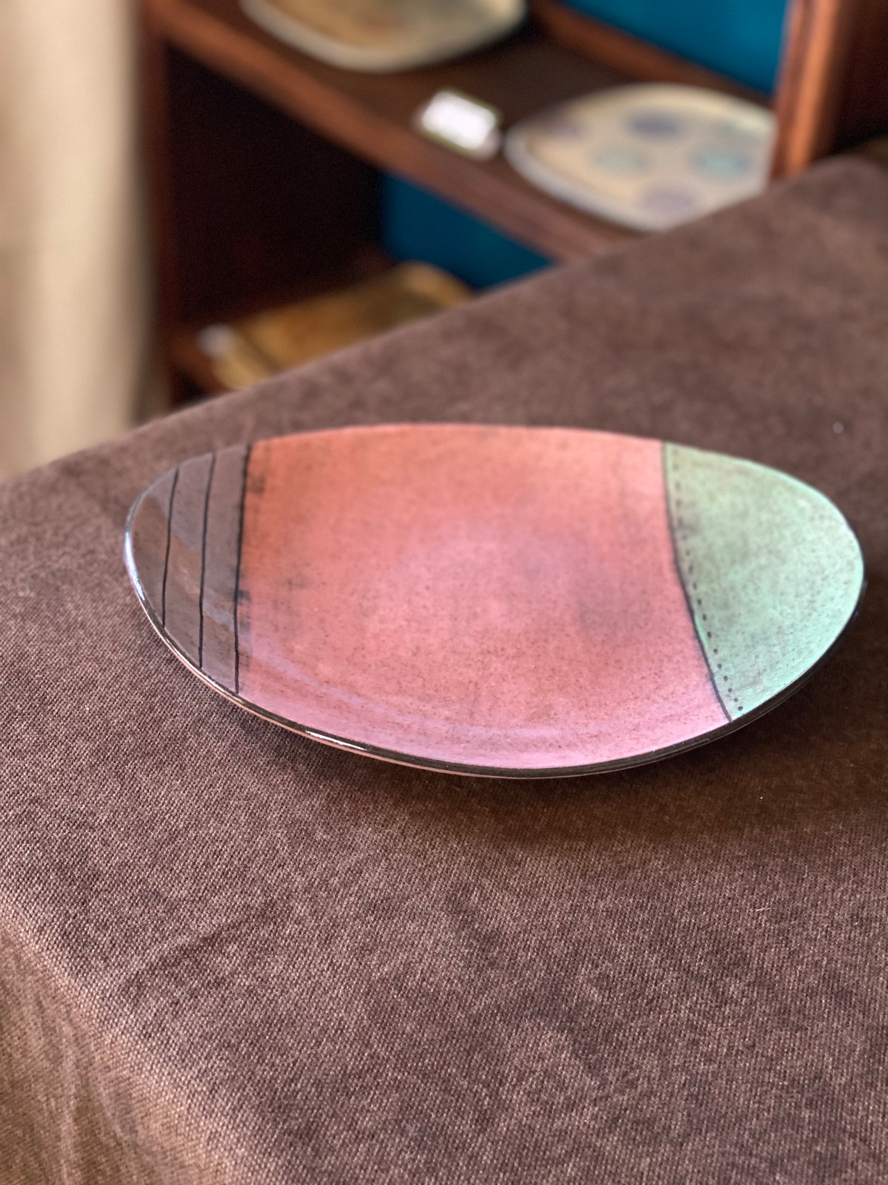 杉町淳美さんの大人気のcolorsシリーズのだ円プレート浅です。