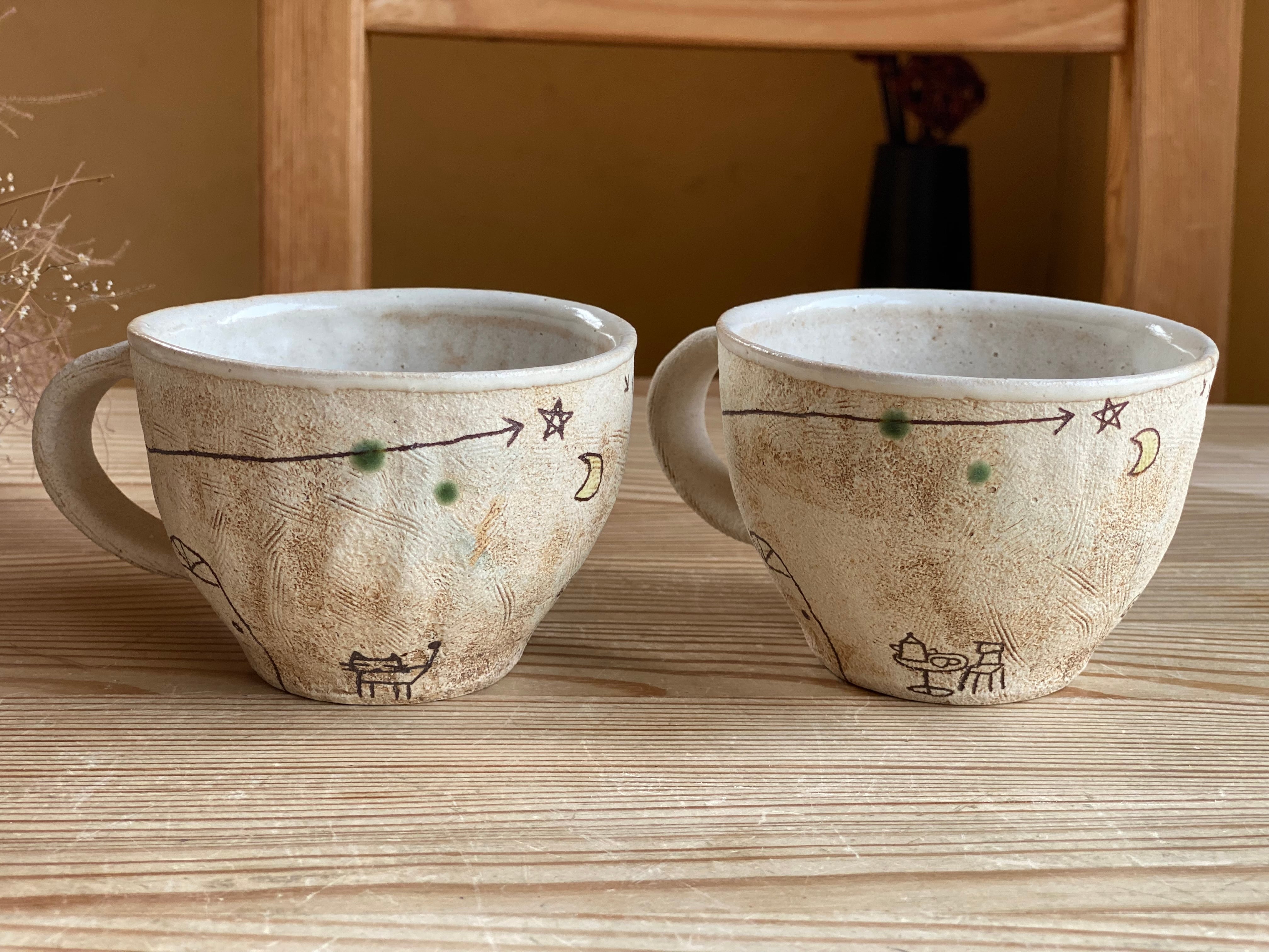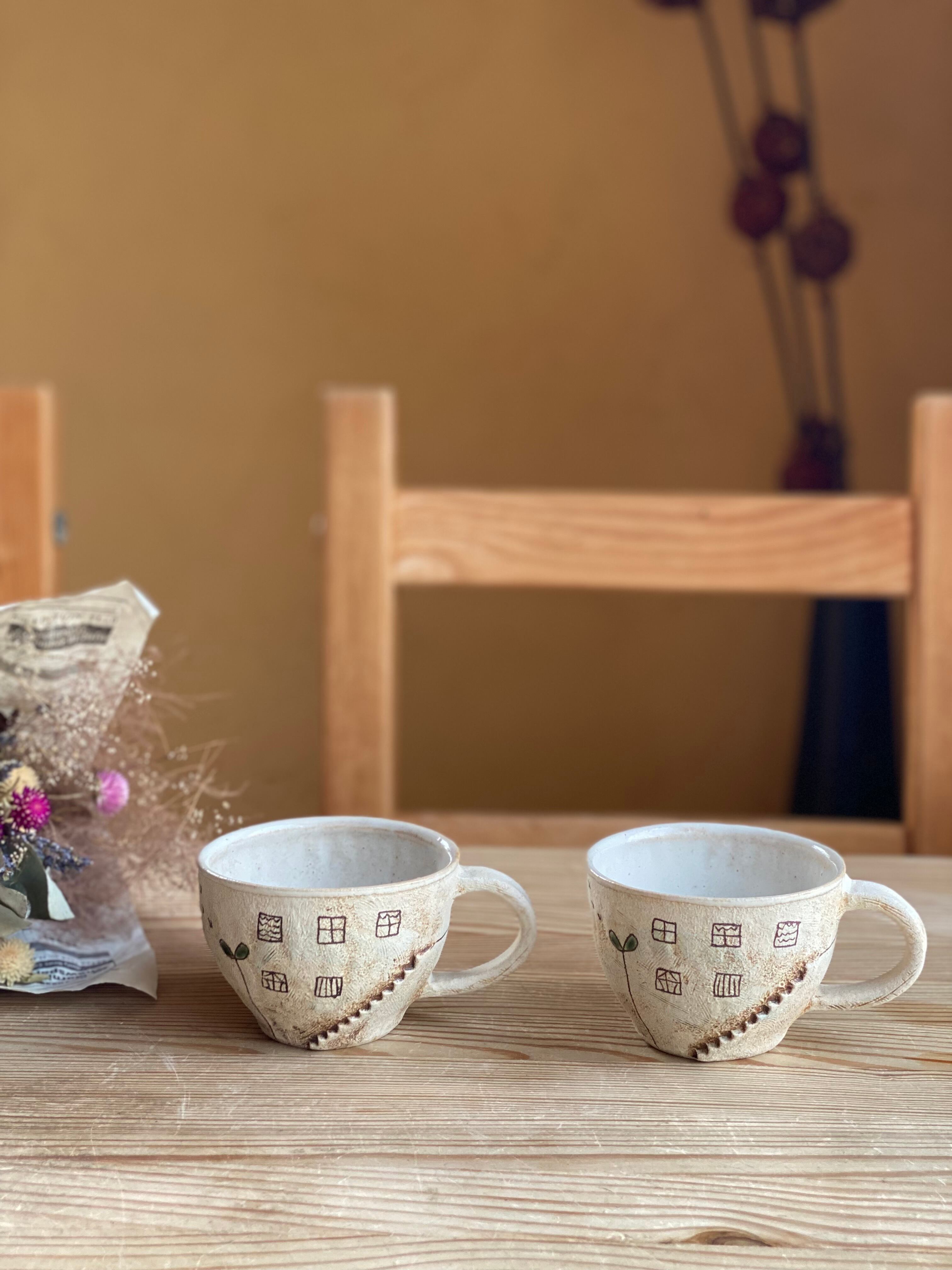 古い壁のお家をイメージして作られたカップは、漆喰の壁のような質感で風合いも良く、